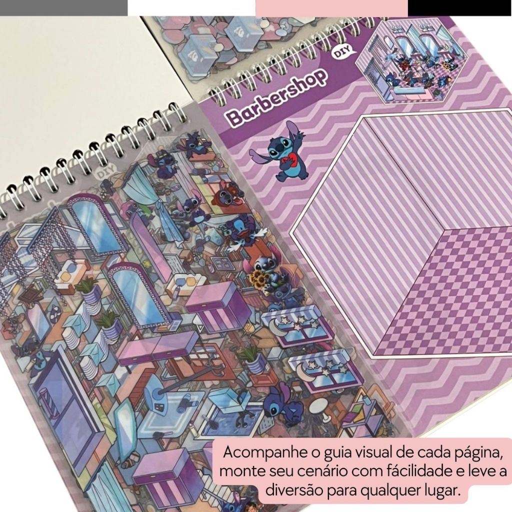 Caderno Stitch Adesivo 3D 6/8 Cenarios Criativo Scrapbook Diy Com Pinça Montar Comodos