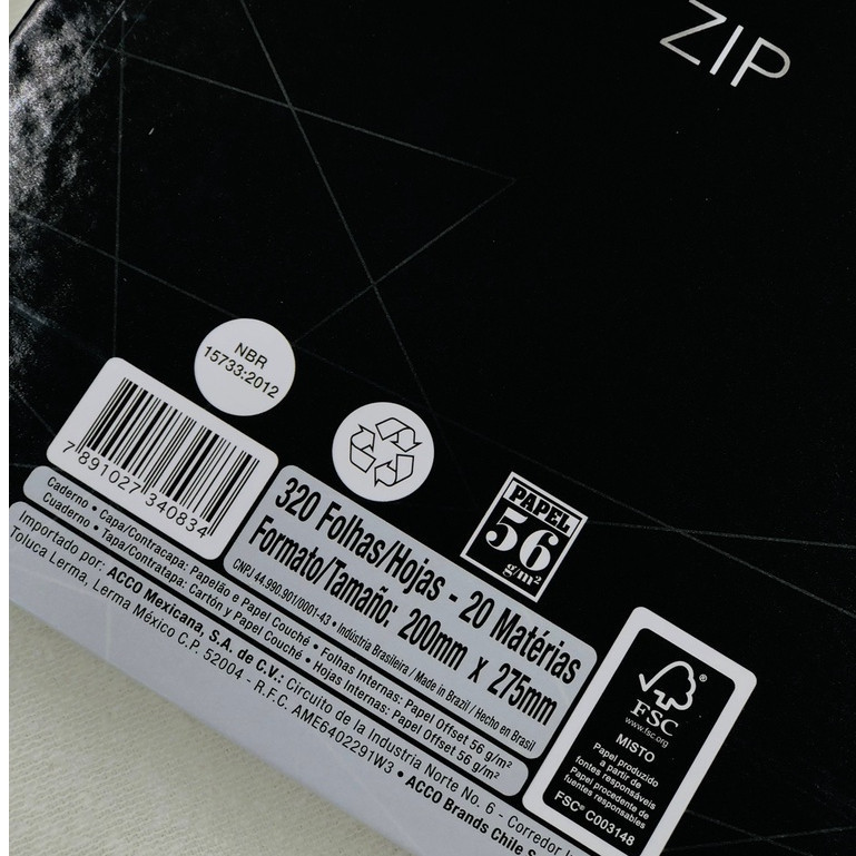 Descrição do produto O Caderno Espiral Capa Dura Universitário 20 Matérias Zip Preto 320 Folhas possui capa dura, folhas pautadas e espiral colorido. Ideal para o dia a dia na escola ou na faculdade. Capa: dura Espiral: colorido Folhas: pautadas Formato: 200mm x 275mm Gramatura: 56 g/m² Número de folhas: 320 folhas Número de matérias: 20 matérias Produto certificado: FSC A coleção Zip foi desenvolvida para quem deseja ter nas mãos um produto com design moderno e que possa ser utilizado em qualquer ambiente, tanto profissional, como acadêmico. Conheça as opções!