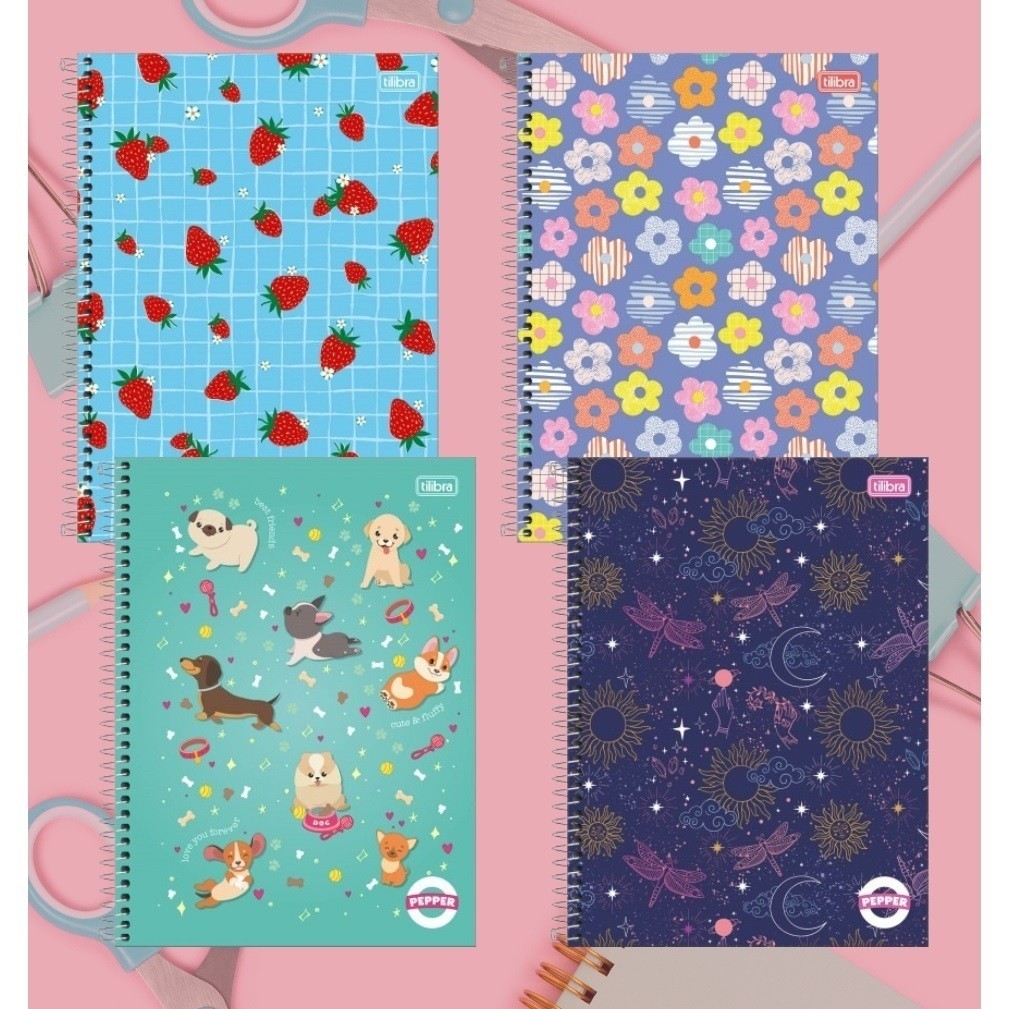 Caderno Tilibra Feminino 10 Matérias 160 Folhas Capa Dura Cadernos Universal Espiral Pepper