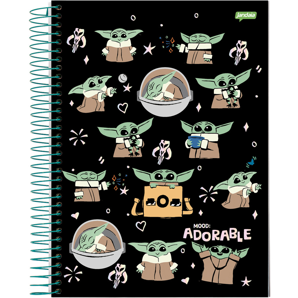 Caderno Universitário Capa Dura 1 Matéria 80 Folhas Grogu Jandaia - Pacote Com 4 Unidades Sortidass