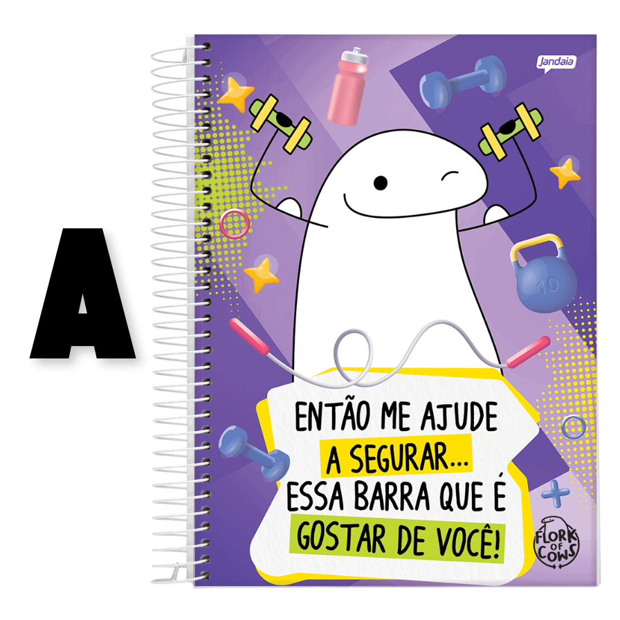 CADERNO ESPIRAL UNIVERSITÁRIO – FLORK Flork é um personagem icônico nascido nas redes sociais, conhecido por seus traços simples e humor leve. Se popularizou rapidamente, especialmente em plataformas como o WhatsApp e o Instagram. O Flork é desenhado como um fantoche de meia com grandes olhos expressivos e boca sem dentes. Suas expressões faciais e gestos simples comunicam uma ampla gama de emoções, desde alegria e entusiasmo até tristeza e frustração. Se tornou um fenômeno por sua capacidade de gerar memes e tirinhas que retratam situações cotidianas com humor e sarcasmo. As histórias do Flork abordam temas como amizade, relacionamentos, trabalho, estudos e as pequenas alegrias e desafios da vida. Embora o Flork seja inicialmente direcionado para jovens e adultos, seu humor simples e universal diverte pessoas de todas as idades. A facilidade de se identificar com as situações retratadas nas tirinhas contribui para a popularidade do personagem. Você pode encontrar o Flork em diversas plataformas online e em sites que compilam memes do personagem. As tirinhas também são publicadas regularmente no site oficial do Flork -IMPORTANTE- Pergunte ao vendedor sobre a disponibilidade das capas Nao havendo capa disponivel em nosso estoque enviaremos capas sortidas Especificações Técnicas • Laminação Fosca • Verniz Reserva • Bolso em Papel • Cartela de Adesivos • Miolo Decorado DETALHES: - Capa dura - Folhas pautadas -tamanho:200mm x 275mm -papel offset 56g/m² DISPONÍVEL EM: 1 Matéria 80 Folhas 10 Matérias 160 Folhas