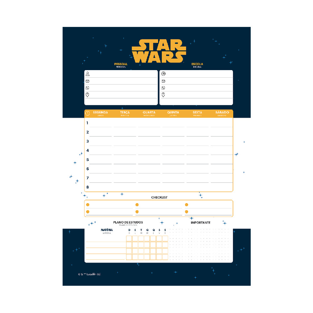 **Certificação do INMETRO**: Não aplicável **Produto certificado pelo FSC:** C004089 **Especificações Técnicas:** * Marca: Jandaia * Referência: 77572-25 * Código: 489172 * Características do Produto: Caderno Universitário NEO Capa Dura 1 Matéria 80 Folhas Star Wars * Dimensões do produto: 200x275mm * Composição interna: Pauta Inteligente com o acesso ao aplicativo JandaIA, Folhas Reposicionáveis NEO, Bolso Plástico, cartela de adesivos, miolo de 90g, Fechamento com Elástico, Espiral Wire-o, Verniz Reserva, Hotstamping, Laminação Fosca. * Embalagem: 1 Unidade **Descrição:** Revolucione seus estudos com o caderno mais avançado do mundo. Equipado com JandaIA seu caderno digital com pauta inteligente. Caderno NEO tem furação especial folhas reposicionáveis para deixar o caderno do seu jeito.