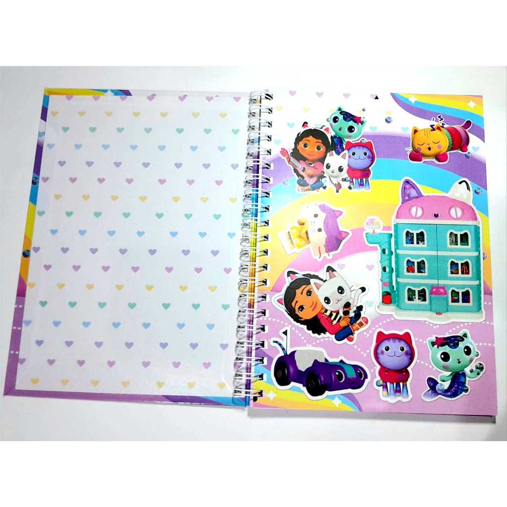 caderno universitário personagem com adesivos 1 matéria capa dura- encadernação wire-o / pronta entrega