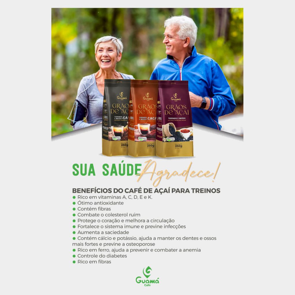 CAFÉ DE AÇAÍ DA AMAZÔNIA TORRADO E MOÍDO 250G SEM GLÚTEN Descubra a combinação perfeita para uma dose extra de energia e saúde! Experimente o Café de Açaí da Amazônia, uma alternativa saudável e deliciosa para o café tradicional que pode ajudar você a melhorar sua saúde. A dor de ter que abandonar seu café devido à cafeína não existe mais! Nosso café é feito com 100% de grãos de açaí torrados e moídos, sendo totalmente livre de cafeína, ideal para quem deseja uma bebida saborosa sem sacrificar a saúde. Aproveite os benefícios de uma bebida que pode impactar positivamente na sua saúde. Com antioxidantes naturais, o Café de Açaí ajuda a reduzir a pressão arterial e promove uma saúde mais equilibrada. Experimente a linha Premium da marca Grãos de Açaí e sinta-se revitalizado e energizado a cada gole. Não deixe objeções como a falta de sabor ou a falta de energia impedirem você de experimentar o Café de Açaí. Com nossa garantia de 100% de satisfação, você pode desfrutar de uma bebida saborosa e rica em benefícios para a saúde, disponível em embalagens de 250g. Faça uma escolha inteligente para sua saúde e bem-estar com o Café de Açaí! Modo de fazer: E como o café comum. São adicionados ao coador o pó do café de açaí, e em seguida, a água quente. Depois, se preferir, é só adoçar. Experimente também o Café de Açaí + Cacau