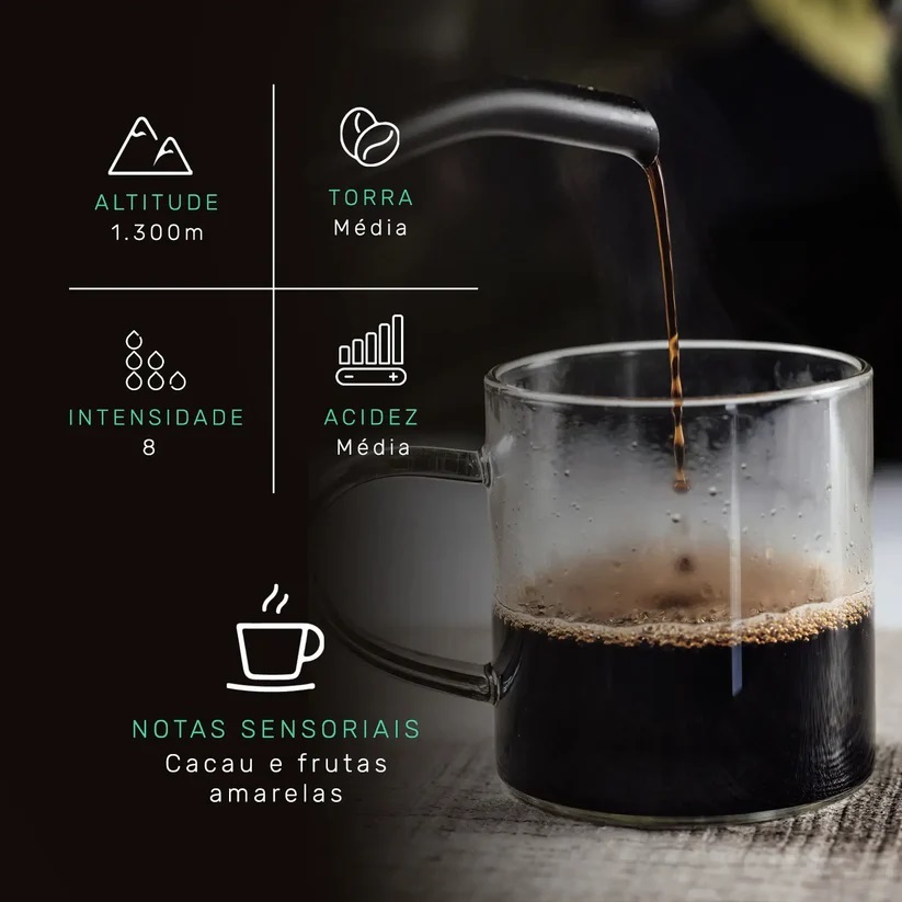 O Café Caparaó é um terroir singular que, para nós, é repleto de afeto pois grande parte da nossa família ainda vive nos caminhos do Caparaó. Produzido na entrada do parque Nacional do Caparaó, onde está localizado o maior pico do Brasil representado pela cruz no alto da montanha, o Pico da Bandeira, com 2.982 metros de altitude. Com mais de 90% da agricultura com base familiar e 100% da colheita feita de manualmente. São selecionadas apenas frutas maduras do café com altissima concentração de doçura. 100% ARÁBICA - O Coffee ++ oferece grãos superespeciais e 100% arábica, que são cultivados com processos criteriosos em altas altitudes no Brasil. Na xícara, esse café tem sabor marcante, doçura natural, notas sensoriais e aromas únicos. CAFÉ ESPECIAL X CAFÉ TRADICIONAL - Café especial é a potência de sabor, com grãos 100% arábicas, aspectos sensoriais diferenciados, acidez equilibrada e doçura natural. Já o café tradicional pode ter a mistura de grãos Robustas (conilon), o que significa mais concentração de cafeína, amargor e ausência de aspectos sensoriais. Que tal abandonar o café queimado e conhecer o doce natural dos grãos especiais? Altitude média: 1000 metros Acidez: Média Notas sensoriais: Notas de Frutas amarelas e cacau, doçura intensa. Torra Média