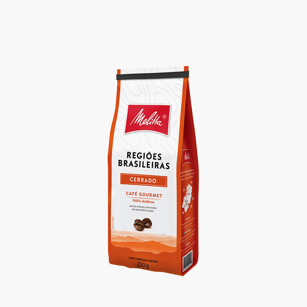 O Café Melitta® Regiões Brasileiras Cerrado 250g Originado do Cerrado Mineiro, café com notas de caramelo e nozes com uma acidez delicadamente cítrica, devido às estações climáticas em que é cultivado serem bem definidas. Com torra média clara, corpo equilibrado e uma acidez leve, resultando em uma bebida encorpada e sofisticada, esse café destaca o melhor das suas características sensoriais, proporcionando um aroma intenso e um sabor marcante a cada xícara. A linha Regiões Brasileiras da Melitta® valoriza a riqueza do território nacional, selecionando grãos de alta qualidade para garantir uma experiência autêntica e saborosa. Melitta® Regiões Brasileiras utiliza grãos cultivados com práticas responsáveis que preservam o meio ambiente, respeitam a comunidade e valorizam o trabalho dos produtores locais. Características do Produto: • 100% arábica • Notas de caramelo e nozes – sabor equilibrado e marcante • Acidez – Delicadamente cítrica • Origem Cerrado Mineiro – região reconhecida mundialmente • Torra média clara – realça o aroma e o sabor da bebida • Moagem média • Possui certificado de Pureza e Qualidade na categoria de Café Gourmet pela ABIC - Associação Brasileira da Indústria de Café • Em 2024 foi eleito o melhor café gourmet torrado e moído do mercado pelo júri especializado do caderno Paladar do jornal O Estado de São Paulo NÃO CONTÉM GLÚTEN. Sugestão de preparo para seu café fresquinho: 1. Utilize água filtrada e evite a fervura excessiva; 2. Para um café equilibrado, use a proporção de 10g de pó para 100ml de água; 3. Filtre com o método de sua preferência e aproveite uma xícara cheia de sabor! Sobre a Melitta® Com mais de 115 anos de tradição, a Melitta® é referência global em cafés, filtros e acessórios para preparo. A marca se dedica em desenvolver, produzir e comercializar produtos Melitta para o consumo e preparo de café, tornando a vida mais saborosa e prática. Sinta o aroma do Cerrado Mineiro com o Café Melitta® Regiões Brasileiras Cerrado. Melitta® - Café fresquinho para sentir mais a vida.