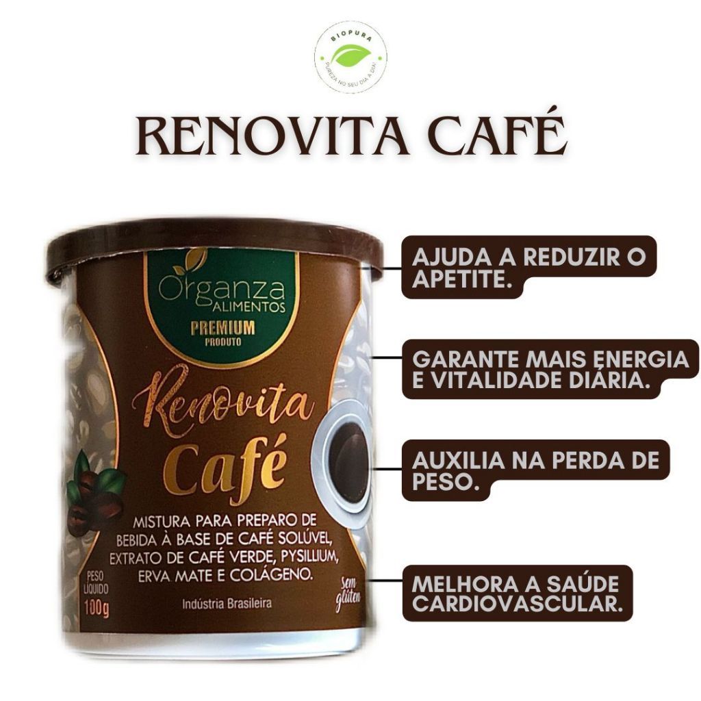 Café Renovita Mistura para preparo de bebida a base de café solúvel, chá verde, pysillium e erva matte. Por que tomar Café Renovita? -Reduz o apetite; -Regula o intestino; -Previne o diabetes tipo 2; -Neutraliza o surgimento do AVC; -Fornece mais disposição e energia ao corpo; -Auxilia a queima de gordura corporal -Ajuda no ganho de massa muscular magra; -Diminui o colesterol ruim (LDL); -Melhora o humor; -Aumenta o colesterol bom (HDL); -Diminui os níveis de açúcar no sangue; -Estimula a função cerebral; -Melhora a circulação sanguínea; -Estimula a concentração e memória; -Estimula a libido (apetite sexual) Ingredientes: Extrato de café verde, Psyllium Extrato seco, Erva-Mate, Colágeno Hidrolisado, Aroma Natural de Garcinia Camboja Conteúdo 100 gr MODO DE USO: Utilizar como bebida quente quente ou gelada, 2 vezes ao dia. adicione 1 colher de chá em 250ml de água quente (80 ºC) e misturar bem até a dissolução e beber imediatamente. CONSERVAÇÃO: Após aberto o Refinax Café deve ser consumido em até 30 dias. Conservar a embalagem sempre fechada em local seco, arejado e escuro.