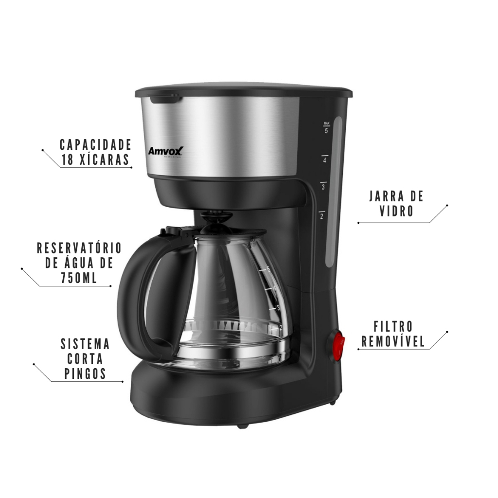 Cafeteira elétrica Amvox ACF 227 18 xícaras 600W 750ML preto e inox