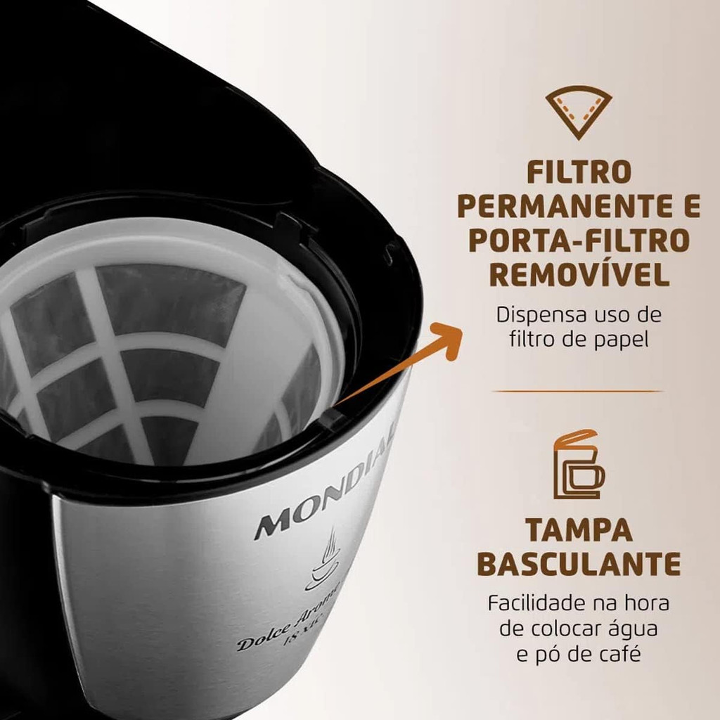 | Cafeteira Elétrica Mondial Dolce Arome C-30 18 Xícara 127V Preta este produto | R$ 148,50 | 25% | 5.0/5 | — |