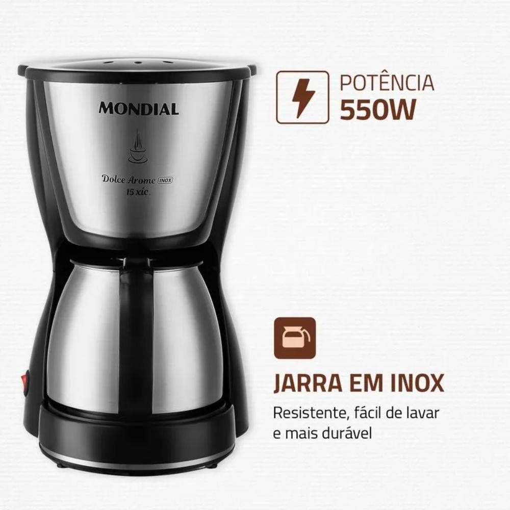 Cafeteira Elétrica Mondial Dolce Arome Preto/Inox 550W 220V - C-34 JI 15X