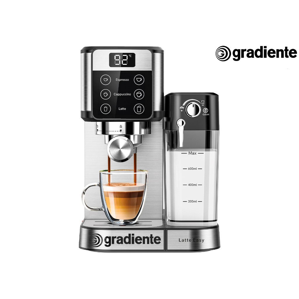 CAFETEIRA SEMI-AUTOMATICA EXPRESSO LATTE EASY 1200W COM PAINEL TOUCH COR INOX - Gradiente Apresentamos a Latte Easy da Gradiente, a escolha ideal para quem busca uma experiência personalizada e rápida no preparo de café; Esta máquina oferece a flexibilidade de utilizar pó, sachê ou cápsulas, garantindo versatilidade e liberdade para cada apreciador de café. CARACTERÍSTICAS: - Reservatório de Leite Generoso: Com capacidade de 800ml, a Latte Easy prepara até 12 cappuccinos de uma vez, tornando-a ideal para quem gosta de receber visitas ou prepara várias bebidas ao mesmo tempo; - Opções de Utilização: Permite o uso de sachê, pó ou cápsulas, proporcionando diversas formas de preparo para atender a todos os gostos; - Bomba Profissional de 20 Bars de Pressão: Garante um expresso denso e saboroso, extraindo o melhor sabor dos grãos de café, com 20 bars de pressão para uma qualidade excepcional; - Potência de 1200W: Potência suficiente para oferecer rapidez e eficiência no preparo de café, sem perder a qualidade. VANTAGENS: - Tecnologia Avançada: A Latte Easy combina inovação e praticidade, oferecendo um café perfeito a cada preparo. Seu design elegante e funcional se adapta facilmente a qualquer ambiente, sendo uma adição sofisticada à sua cozinha ou escritório; - Versatilidade: Seja para um expresso rápido ou um cappuccino suave, a máquina se adapta às suas preferências com facilidade; - Praticidade: Prepara um café fresco e personalizado em poucos minutos, ideal para o dia a dia corrido. FICHA TECNICA: - Capacidade do Reservatório de Leite: 800ml; - Painel Touch Com Funções Automáticas; - Tipos de Café: Pó, sachê ou cápsulas; - Prepara 2 expressos ao mesmo tempo; - Número de Cappuccinos: Até 12; - Design: Elegante e funcional; - Com indicador de água: Sim; - Pressão Da Bomba : 20 bars; - Permite utilizar pó: sim; - Design Exclusivo; - Potência: 1200W. - Marca: Gradiente - Modelo: Latte Easy - Cor: Prata SKU: 24399 e 24398