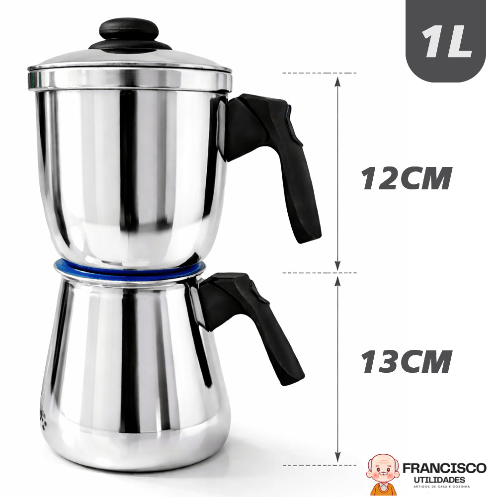 Cafeteira Italiana 1L em Alumínio Forte Polido e Craqueado