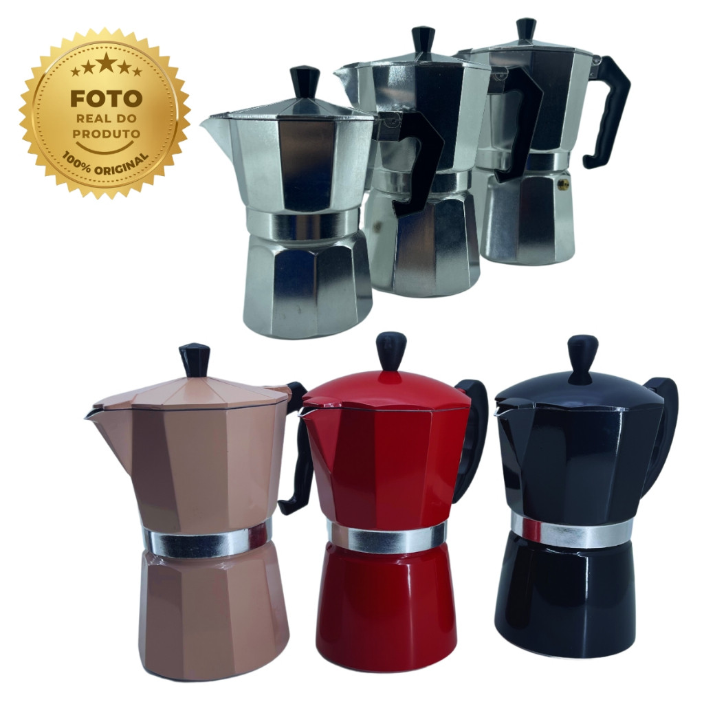 | Cafeteira Italiana Alumínio Colorida 450ml, 300ml e 150ml este produto | R$ 59,90 | — | 4.4/5 | — |