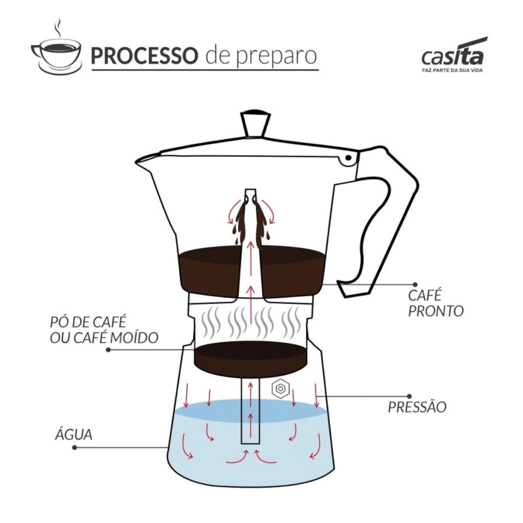 Cafeteira Italiana Casita 6 ou 9 Xícaras (300ml ou 450ml) em Alumínio Preto Tenha o sabor do café tradicional feito na chama do fogão com a Cafeteira Italiana Casita. Prática, elegante e durável, ela prepara um café encorpado e aromático em poucos minutos. - Disponível em dois tamanhos: 300ml – até 6 xícaras (50ml cada) Medidas: 18 x 16,5 x 9,8 cm 450ml – até 9 xícaras (50ml cada) Medidas: 21 x 17,5 x 10,9 cm Diferenciais do produto: - Material resistente: 80% alumínio, 10% PA, 5% PP, 2% cobre, 2% silicone e 1% ferro. - Sabor único: sistema de percolação que realça o aroma e o gosto do café. - Praticidade: dispensa o uso de filtros de papel ou pano. - Segurança garantida: possui válvula de segurança na caldeira. - Compatível com fogão a gás (não pode ser usada em micro-ondas ou lava-louças). Ideal para o dia a dia ou momentos especiais, a Cafeteira Italiana Casita une tradição, praticidade e qualidade. Escolha o tamanho ideal para você: 6 xícaras (300ml) ou 9 xícaras (450ml).