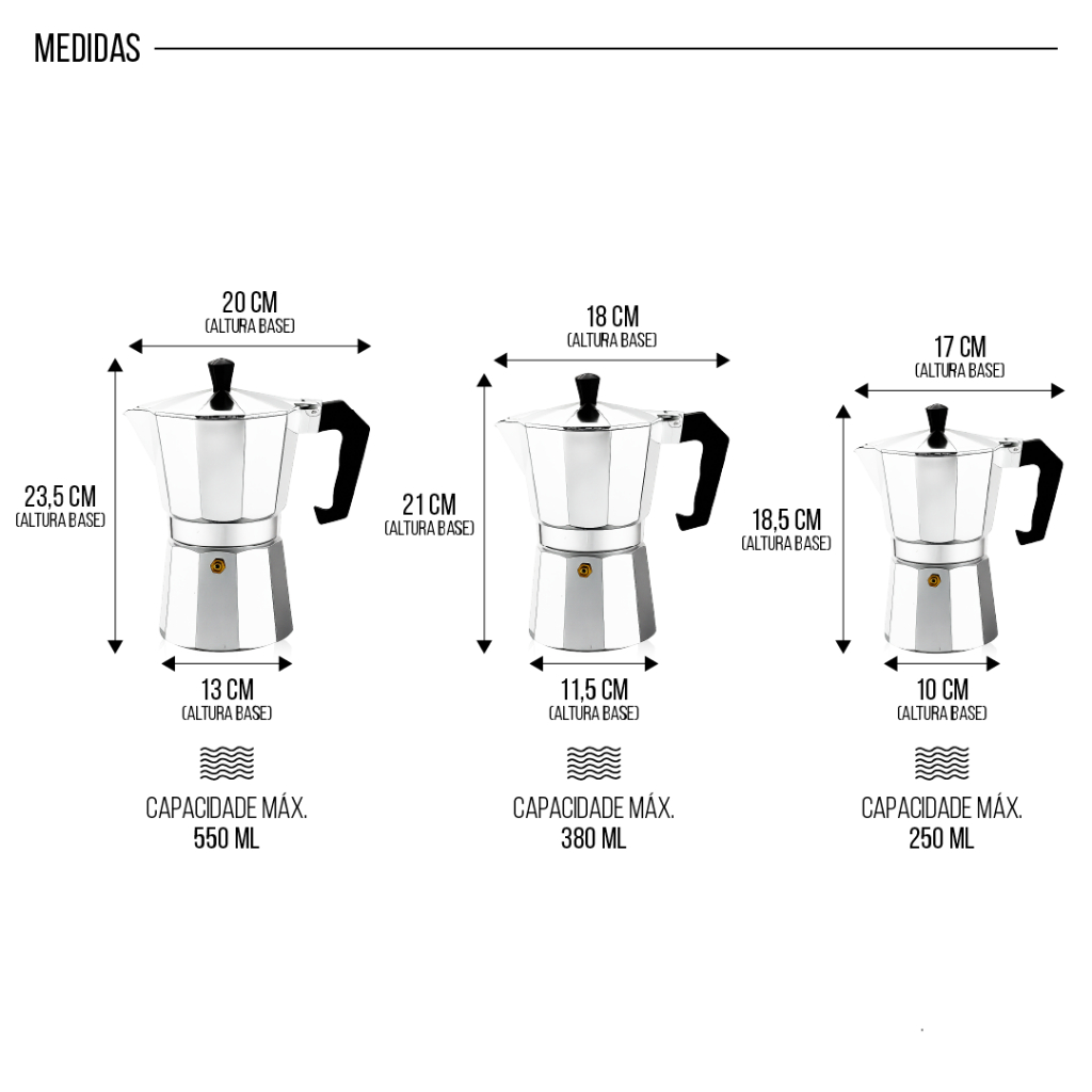 ⚠️ ATENÇÃO • Antes de comprar, selecione a CAPACIDADE correta (6 ou 9 xícaras). ☕ POR QUE ESSA CAFETEIRA? • Método Moka: café encorpado e aromático no fogão. • Alumínio de alta qualidade + válvula de segurança. • Cabo/pegador antitérmico e design clássico. • Fácil de usar e limpar. 📦 O QUE VAI NA CAIXA • 1x Cafeteira Italiana Moka (na capacidade escolhida) 📏 TAMANHOS & CAPACIDADES (Dose padrão ~50 ml/xícara) • 6 xícaras → ~250 ml | Dim.: 17 x 18,5 cm | Ideal 2–3 pessoas • 9 xícaras → ~380 ml | Dim.: 18 x 21 cm | Ideal família/visitas 🧪 ESPECIFICAÇÕES • Material: Alumínio (cor cromado) • Uso: fogão a gás ou elétrico (não compatível com indução) • Limpeza: lavar à mão; não usar lava-louças (preserva o alumínio) 👣 MODO DE USAR 1) Encha a base com água até a válvula de segurança. 2) Coloque o café moído no filtro sem compactar. 3) Rosqueie bem e leve ao fogão em fogo baixo. 4) Quando o café subir, desligue e sirva. ✅ QUALIDADE NO ENVIO • Cada unidade é conferida antes do despacho. • Dúvida ou problema? Chame no chat – a gente resolve! • Dica: filme o unboxing. Se houver dano/erro no pedido, o vídeo agiliza a solução. ⚠️ ((UTILIZE O PRODUTO SEMPRE EM FOGO BAIXO PARA GARANTIR MAIOR DURABILIDADE E SEGURANÇA DURANTE O USO. ESTE ITEM É APROVADO PELO INMETRO, ASSEGURANDO QUALIDADE, CONFIABILIDADE E PADRÕES DE SEGURANÇA CERTIFICADOS.) 🎯 FIQUE POR DENTRO • Siga a loja (+Seguir) e receba cupons e promoções relâmpago.