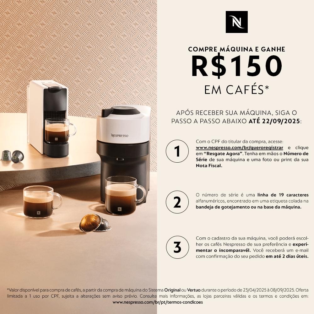 Apresentamos a Nespresso Pixie Redesign, a combinação perfeita de estilo e desempenho. Com um design industrial moderno, esta máquina de café é compacta, resistente e elegante. Ideal para quem tem altos padrões de café e design, a Pixie Redesign garante qualidade, sofisticação e precisão. Eleve sua experiência com café a outro nível com a Nespresso Pixie Redesign. Características Tipo: Elétrica Tipo de Café: Cápsula Capacidade do Reservatório: 700ml Quantidade de Xícaras: 01 Tipos de Bebidas: Quente Sistema Carta Pingos Bandeja para Resíduos Trava na Tampa Reservatório Removível Desligamento Automático Luz indicadora de funcionamento Tempo de Preparo: De acordo com a bebida Especificações Técnicas Modelo: D62BR Cor: Azul e Preta Potência: 1350 W Voltagem: 110V e 220V (não é bivolt) EAN: 7630751764314 (110V) / 7630751764352 (220V) Garantia: 12 meses Dimensões e Peso Dimensões do produto sem embalagem (AxLxP): 117x324x235 mm Dimensões do produto com embalagem (AxLxP): 117x324x235 mm Peso do produto sem embalagem: 2,48 Kg Peso do produto com embalagem: 2,48 Kg Itens Inclusos 01 Pixie Redesign Azul Escuro Agente Validador Produto possui certificação de segurança compulsória, certificado pela TUV 20.1796, organismo acreditado pela CGCRE do Inmetro.