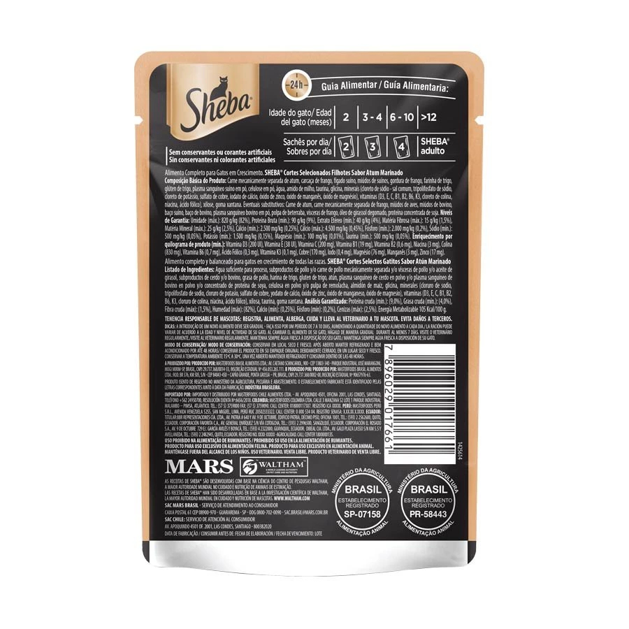 Caixa 10un Ração Úmida Sheba Sachê Gatos Filhotes Atum 85g