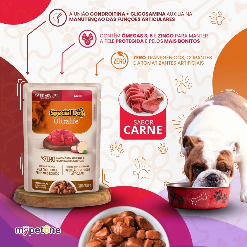 Caixa 12 Sachê Special Dog Ultralife Raças Pequenas Sabor Carne - 100g