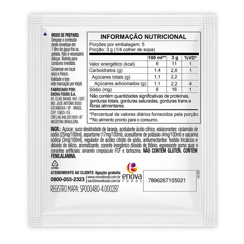 O Ki-Suco Laranja oferece um sabor especial e adocicado, super refrescante e prático para toda a família! – Rende 1 litro! – Gostoso e refrescante. – Com Vitamina C. – Com polpa de fruta. – Embalagem divertida com o jarrão sorridente. – Ótimo custo benefício. Açúcar, vitamina C (ácido ascórbico), suco de laranja desidratado, acidulante ácido cítrico, edulcorantes: ciclamato de sódio (25mg/100ml), aspartame (17mg/100ml), acesulfame de potássio (4mg/100ml) e sacarina sódica (3mg/100ml), aromatizante, regulador de acidez citrato de sódio, corante inorgânico dióxido de titânio, antiumectantes: fosfato tricálcico e dióxido de silício, corantes artificiais: tartrazina e amarelo crepúsculo FCF e espessantes: goma xantana e goma guar. NÃO CONTÉM GLÚTEN. CONTÉM FENILALANINA.