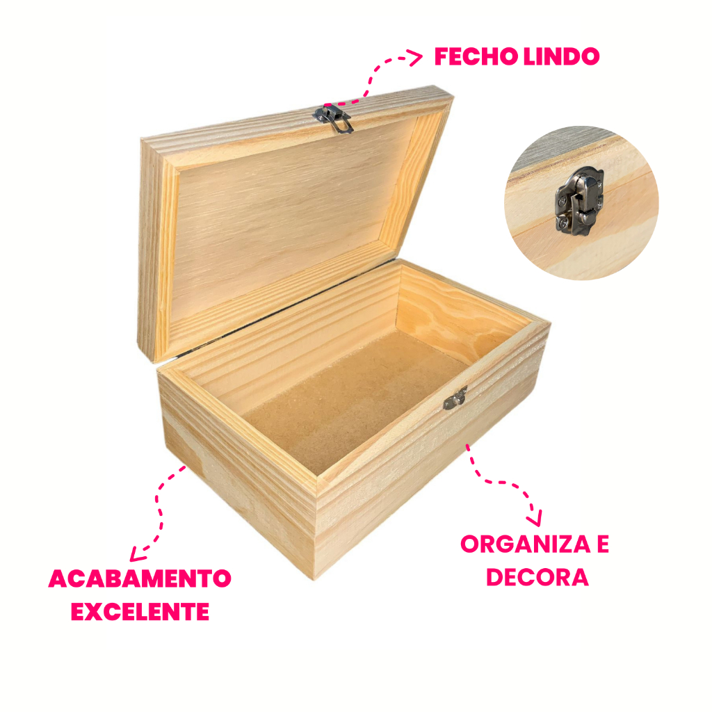 Caixa 25x15x9 madeira pinus com fecho