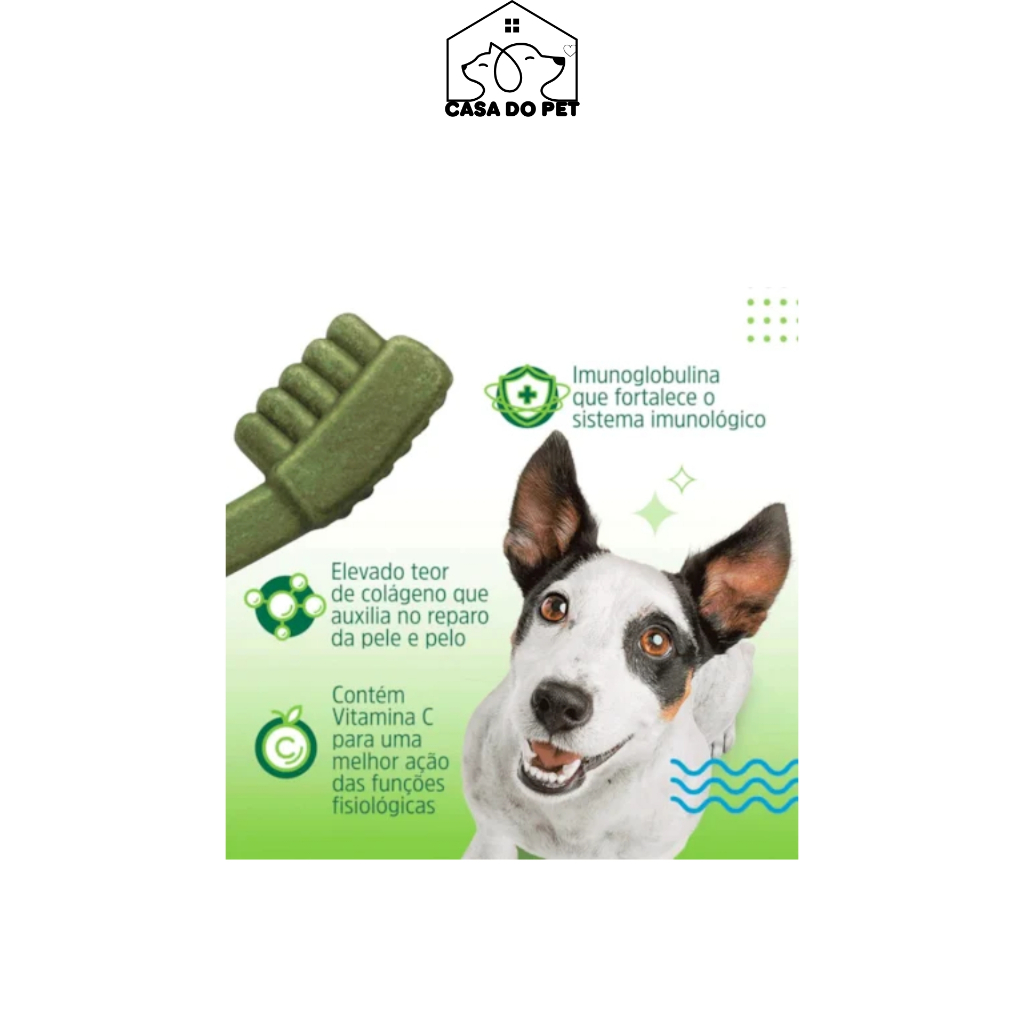 Dogfy é um petisco dental para cães que ajuda a cuidar da saúde bucal do animal. Está disponível em diferentes tamanhos e sabores. Benefícios : Ajuda a reduzir a placa bacteriana - Fortalece o sistema imunológico - Auxilia no controle do tártaro - Ação preventiva contra doenças da gengiva - Antiestresse - Contém vitamina C - Contém colágeno Características: - Textura micro porosa que auxilia na limpeza profunda dos dentes - Livre de corantes artificiais - Contém imunoglobulina (proteína que fortalece o sistema imunológico)