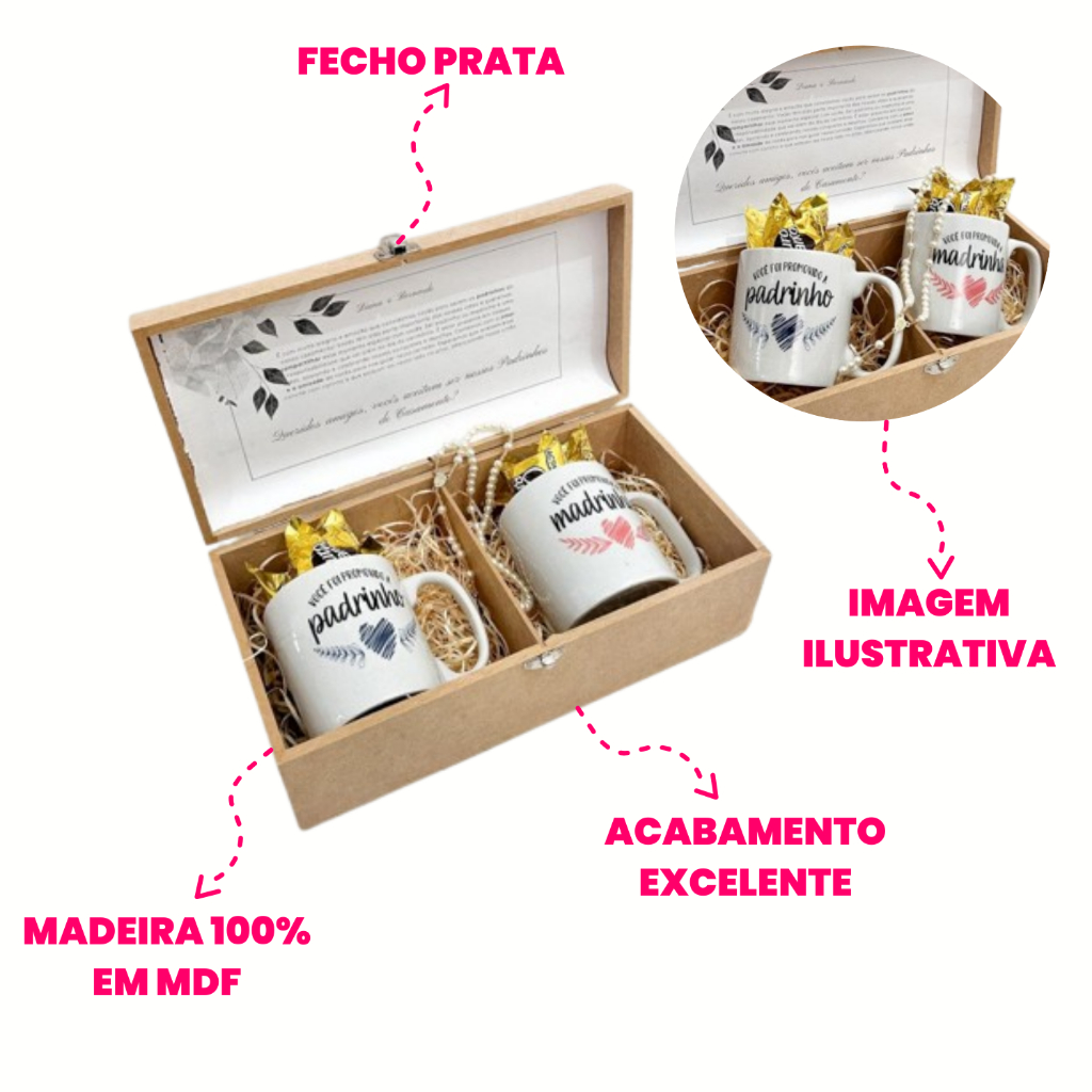 Caixa 30x15x10 para duas canecas presente para padrinhos em mdf