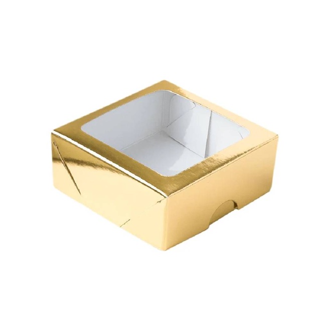 Caixa 4 Doces com Visor S11 9x9x4cm Dourado 10un - ASSK