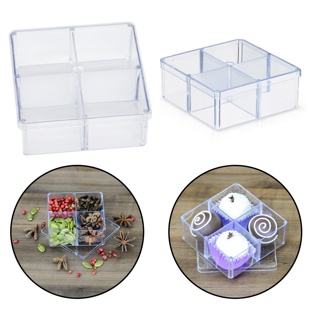 Caixa acrílica com DIVISÓRIAS - 7x7 cm para lembrancinhas, especiarias de gin, brigadeiro e doces