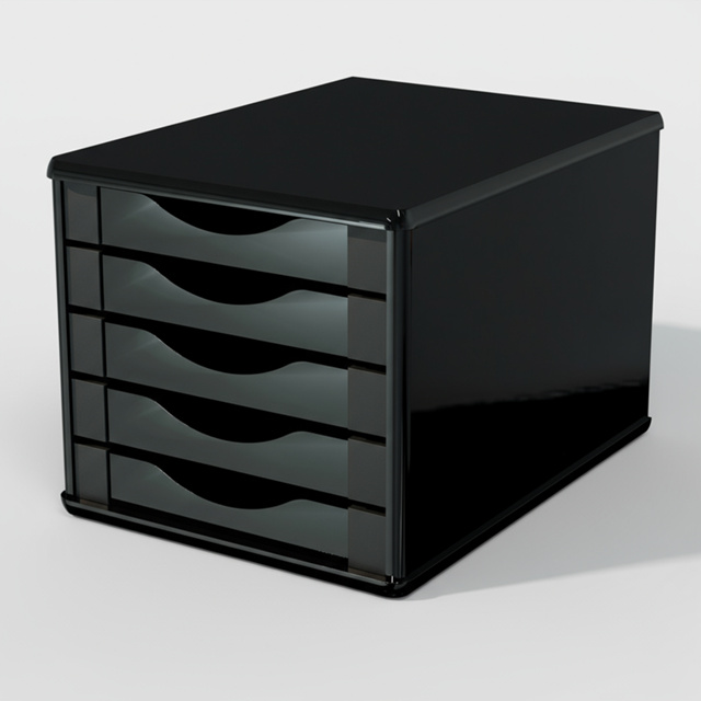 Caixa Arquivo Gaveteiro de Mesa 5 Gavetas Madeira MDF Preto Black Piano
