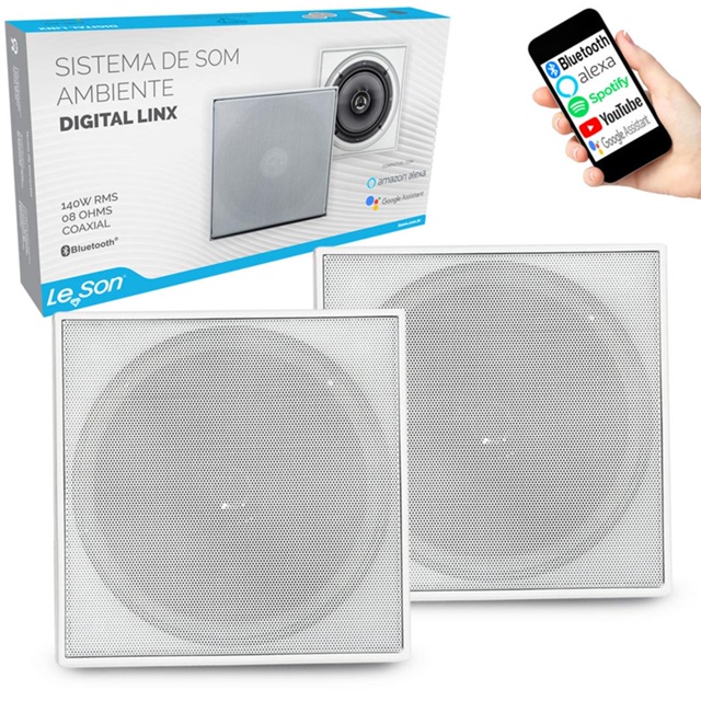 Mais de 15 anos de experiencia no mercado com os melhores produtos e o melhor atendimento! KIT COM 1 ARANDELA QUADRADA ATIVA BLUETOOTH 1 ARANDELA PASSIVA Compativel com ALEXA e GOOGLE ASSISTENTE Lancamento da Le Son, a arandela Bluetooth e feita com materiais de qualidade e resistentes, garantindo completa satisfacao a seus compradores. Controle de som por Bluetooth Produto inovador, levando praticidade para preencher qualquer ambiente com suas musicas prediletas! Conta com uma arandela ativa de 70W Rms e uma passiva, podendo ser instalada em forro de drywall, gesso, madeira , pvc, possui garras para fixacao ajustaveis. A arandela ativa e ligada a energia por fonte bivolt e e controlada pelo Bluetooth que estiver conectado a ela A arandela passiva e ligada na ativa por meio de fio paralelo (nao incluso), a passiva nao necessita ser ligada a energia Caracteristicas tecnicas da Arandela ativa: - Alto Falante: 6 polegadas - Tweeter coaxial com piezo duplo - Potencia Nominal: 70W Rms - Faixa de Frequencia: 100 - 20kHz - Impedancia: 8 Ohms - Alto falante mid bass com borda de espuma - Dimensoes: 21 cm x 21 cm - Cor: Branca Caracteristicas tecnicas da Arandela passiva: - Alto Falante: 6 polegadas - Potencia Nominal: 70W Rms - Tweeter coaxial com piezo duplo - Faixa de Frequencia: 100 - 20kHz - Impedancia: 8 Ohms - Dimensoes: 21 cm x 21 cm - Cor: Branca Conteudo da embalagem: - 1 Arandela Quadrada Ativa - 1 Arandela Quadrada Passiva - 1 Fonte de alimentacao Bivolt - Kits de suportes de fixacao - 1 Manual Recomendamos que a instalacao seja feita por um profissional.