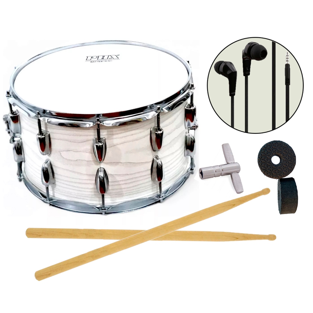 Caixa Bateria Phx Music 14x8 Madeira Cromado Pele Cristal