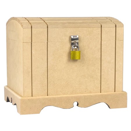 Caixa Baú De Madeira Em Mdf Cru + Cadeado Com Chave