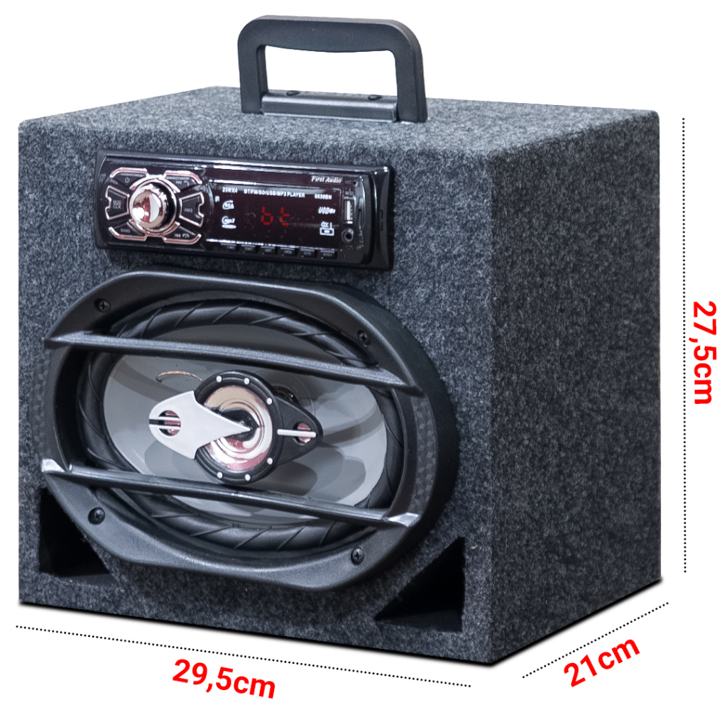 Com essa caixa você poderá ouvir todos os tipos de som com uma alta qualidade aliada a uma enorme potência sonora, através deste sistema você poderá reproduzir sons em todas as faixas de áudio. Reproduzindo entre 40Hz e 25000Hz, conseguindo assim uma qualidade incomparável. Conteúdo da Embalagem: - 1 Alto Falante Leson 69 - 1 Caixa em Carpete - 1 Fonte 12v - 1 Radio Bluetooth Usb Fm * Itens acima já irão montados na caixa com fios Radio Bluetooth Usb Pen Drive, Fm/Am (necessita de antena) Importante: Recomendamos que ao utilizar o produto, não ultrapasse o VOLUME 45, tendo em vista que itens que compõe a caixa não são produzidos exclusivamente para o kit e sim para um vasto modelos de alto falantes, seguindo nossas orientações terá um som de qualidade e duradouro e evitando danos aos equipamentos.
