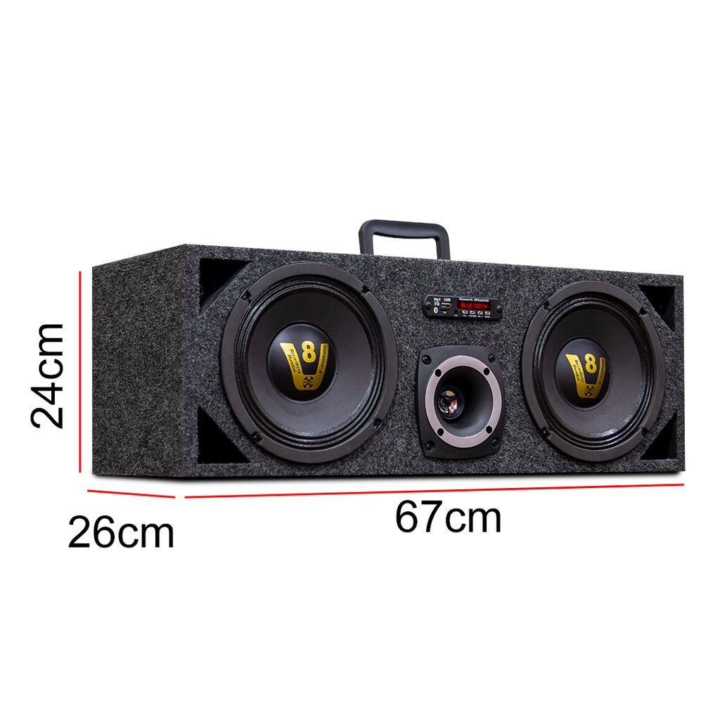 Itens inclusos: - 2 Falante Woofer 8 Polegadas 200rms - 1 Modulo Amplificador Faldon 300.2 - 1 Tweeter Compet 100rms - 1 Caixa madeira carpete - 1 Fonte automotiva - 1 Alça - Cabos de ligação e tomada Suporte para USB/ SD/ abertura para cartão MMc Compatível com formato de música MP3 Com Bluetooth PRODUTO DE ÓTIMA QUALIDADE E PODE SER CONFIGURADO DE ACORDO COM SEU GOSTO. TAMBÉM PODE SER INSTALADA EM VEÍCULOS PRECISANDO FAZER PEQUENAS MODIFICAÇÕES. Importante: A *OESTESOM* recomenda que a instalação seja feita por profissional especializado e não se responsabiliza pelo mau uso do produto.