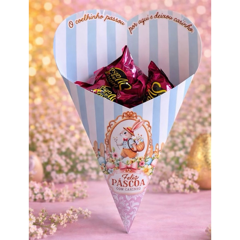 Caixa Buquê Cone Coração Páscoa - Embalagem para Bombons - Presente Páscoa, Lembrança Páscoa
