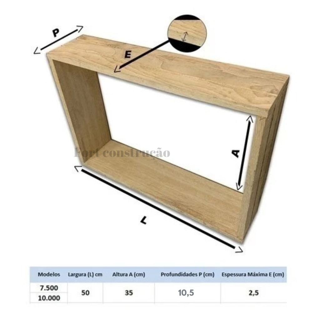 Garanta mais durabilidade e eficiência para o seu ar-condicionado de 7500 ou 10.000 BTUs com nosso caixonete! Fabricação Própria Design discreto e elegante Perfeito para aparelhos de 7500 e 10.000 BTUs Proteção que combina com a sua casa e com o seu conforto! MEDIDAS INTERNAS: Largura - 50cm Altura - 35cm Profundidade - 13cm Espessura - 2,5cm