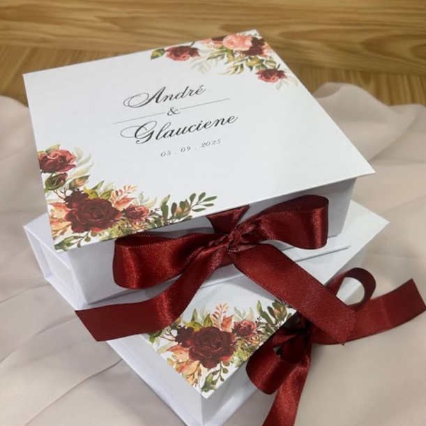 Caixa Cartonada Convite Padrinhos Casamento Personalizada e Sofisticada -15x15x5cm