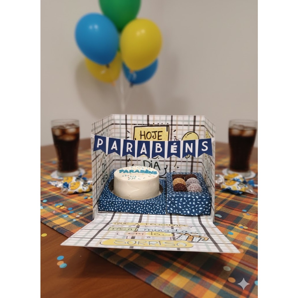 Caixa cenário azul festa para bolo e docinho papel triplex nova