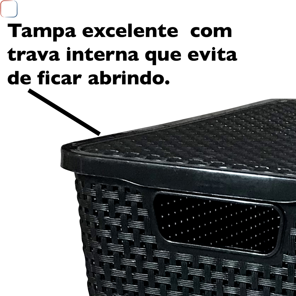 Caixa / Cesta Organizadora Grande 40 Litros Empilhavel Rattan Preta - Cesto Organizador 40L Para Guardar Brinquedos