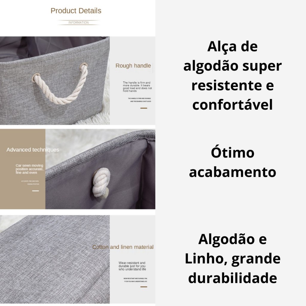 Caixa Cesto Organizador Tecido Linho dobrável 41x32x20 Multiuso Decorativo Funcional Cesta Produtos