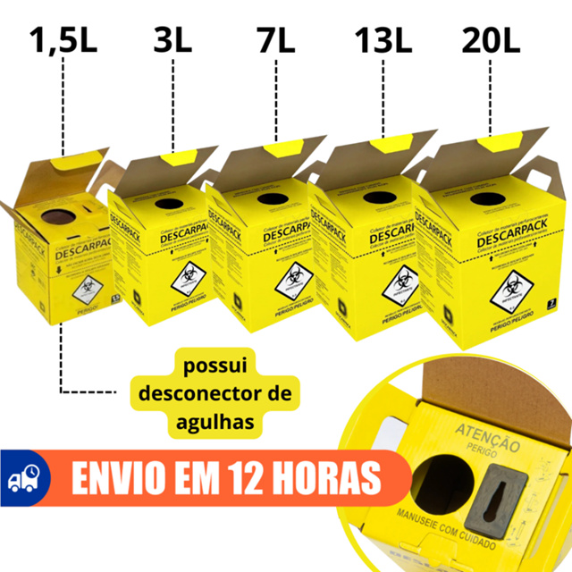 | Caixa Coletora Para Material Perfurocortante 1,5L 3L 7L 13L 20L De... este produto | R$ 12,90 | — | 4.9/5 | 184 |