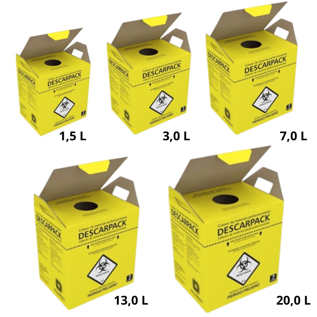 Caixa Coletora para Material Perfurocortante Descarpack 1,5L 3L 7L 13L 20L
