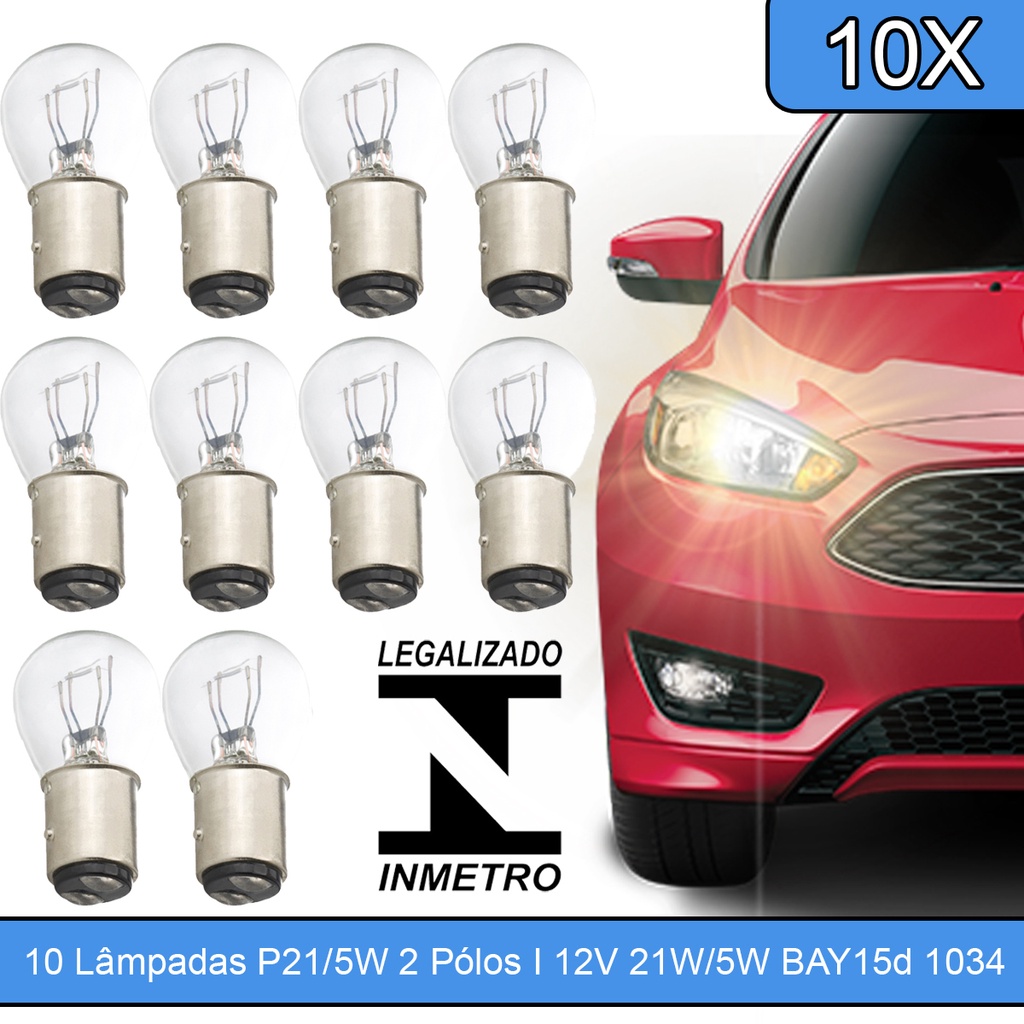 Caixa Com 10 Lâmpadas Automotivas (1034) P21/5w 12v 2 Polos lanterna traseira