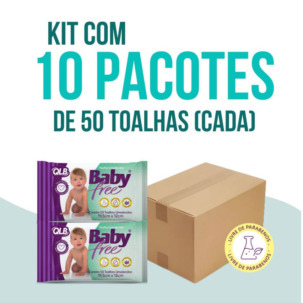 Caixa com 10 Lenços/Toalhas Umedecidas Baby Free c/ 50 Unidades Cada