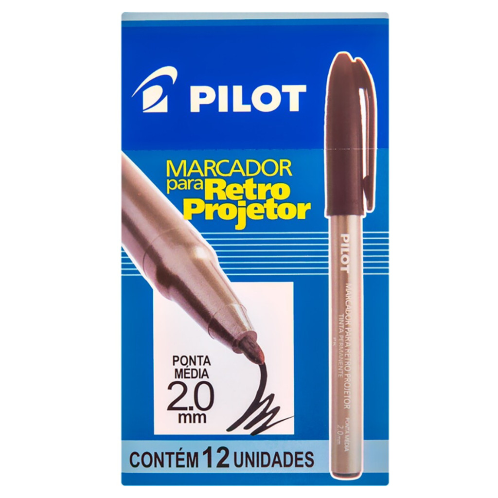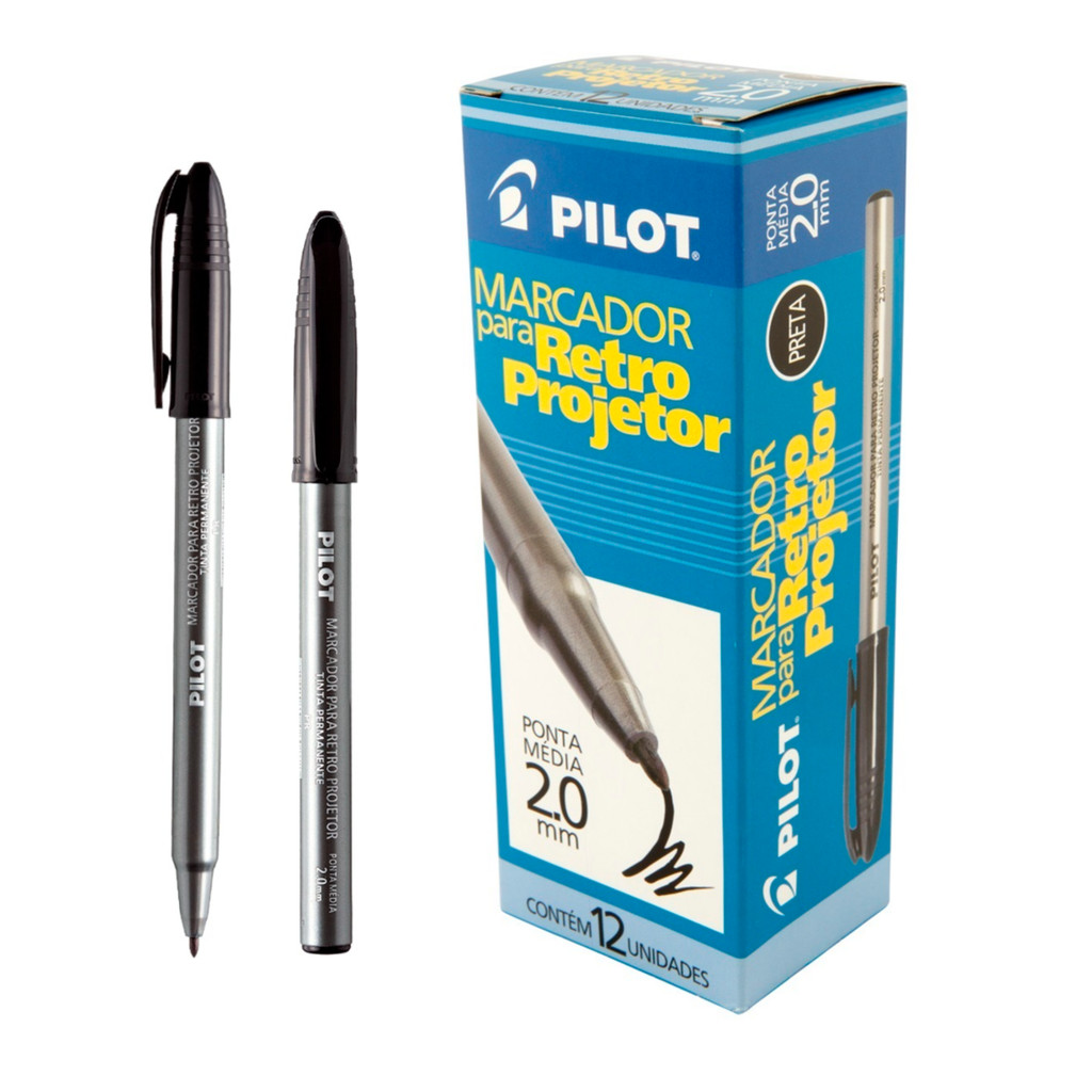 Caixa Com 12 Marcador Para Retroprojetor Pilot Ponta Média 2.0mm Preto
