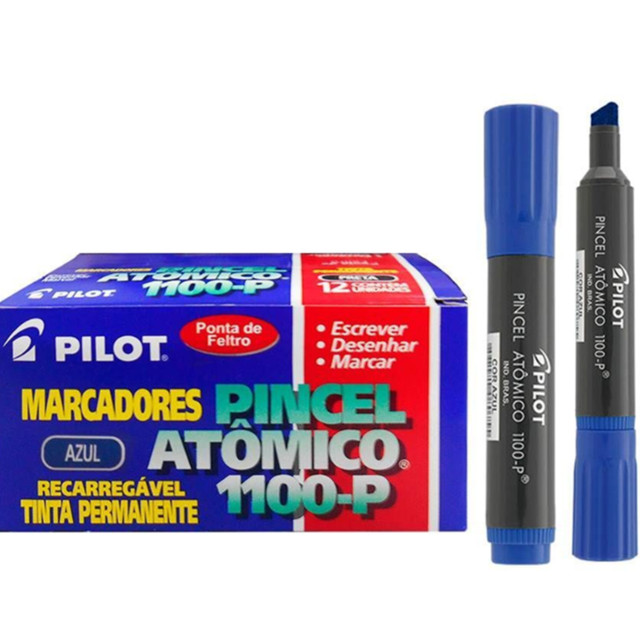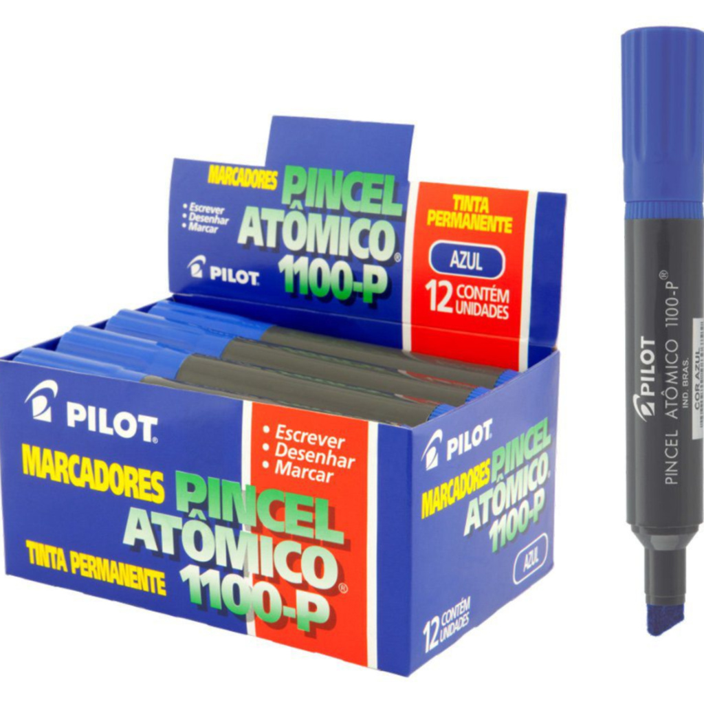 Caixa Com 12 Marcador Pincel Permanente Atômico 1100-p Recarregável Azul Pilot