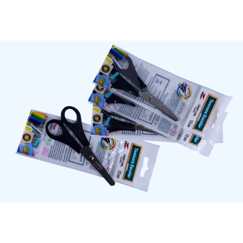 A Caixa com 12 Tesouras de Aço é ideal para uso escolar e doméstico. Com lâminas de aço resistentes e design ergonômico, oferece um corte preciso e seguro, perfeito para crianças e adultos. A tesoura escolar preta é leve e fácil de manusear, tornando-a uma excelente opção para atividades de papelaria, como recorte de papel, cartolina e outros materiais. Prática e durável, é perfeita para escolas, escritórios e casa, garantindo qualidade e eficiência em todas as suas tarefas de corte.