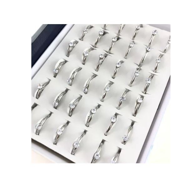 Caixa com 36 Anel Solitário Prata ou Dourado Atacado e Revenda queima de estoque ( (NUMERAÇÕES MEDIANTE ESTOQUE)