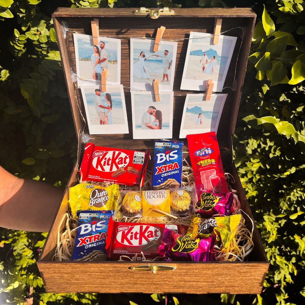 Encontre o item Caixa com fotos e Chocolates / Caixa de Presente para Namorados Aniversário de Namoro e Casais na subcategoria Caixas de Presente (de Papelaria), disponível na Shopee Brasil por R$ 48,00. Nota 4.9 de 5 na Shopee e 13 unidades vendidas, este produto se destaca pelo excelente custo-benefício.