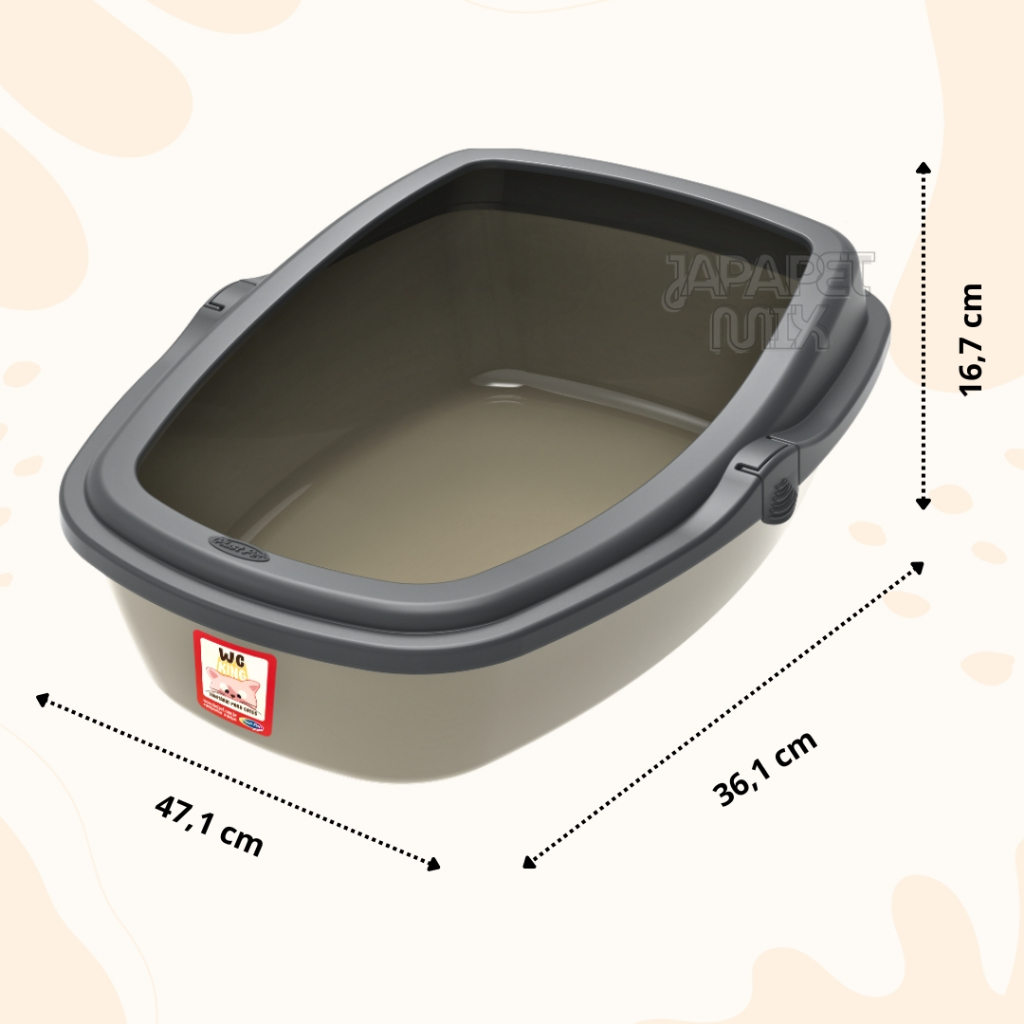 O WC King é o sanitário de gato ideal para quem busca organização e praticidade. Seu design foi feito para diminuir a bagunça que os gatinhos fazem ao redor da caixa de areia enquanto cavam. O WC King possui uma textura interna lisa que facilita a limpeza e impedi que a sujeira grude no fundo da bandeja. O produto também possui a altura ideal para os gatos, não é nem baixa nem alta demais. Para facilitar a higienização, o WC King possui um encaixe prático que permite que sua tampa seja removida na hora da lavagem, facilitando a limpeza. Tamanho Médio: C.47,1 x L.36,1 x A.16,7cm